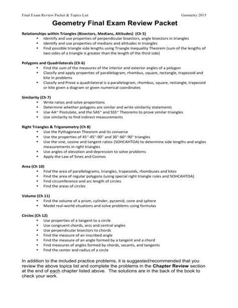 Download geometry a final exam review packet Hardcover Google eBookstore